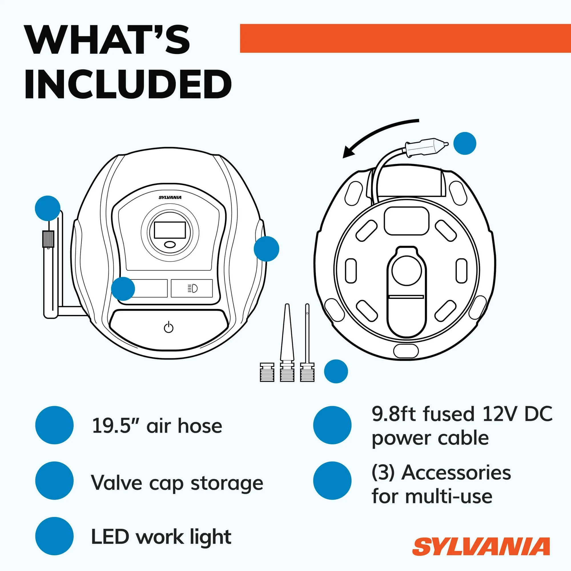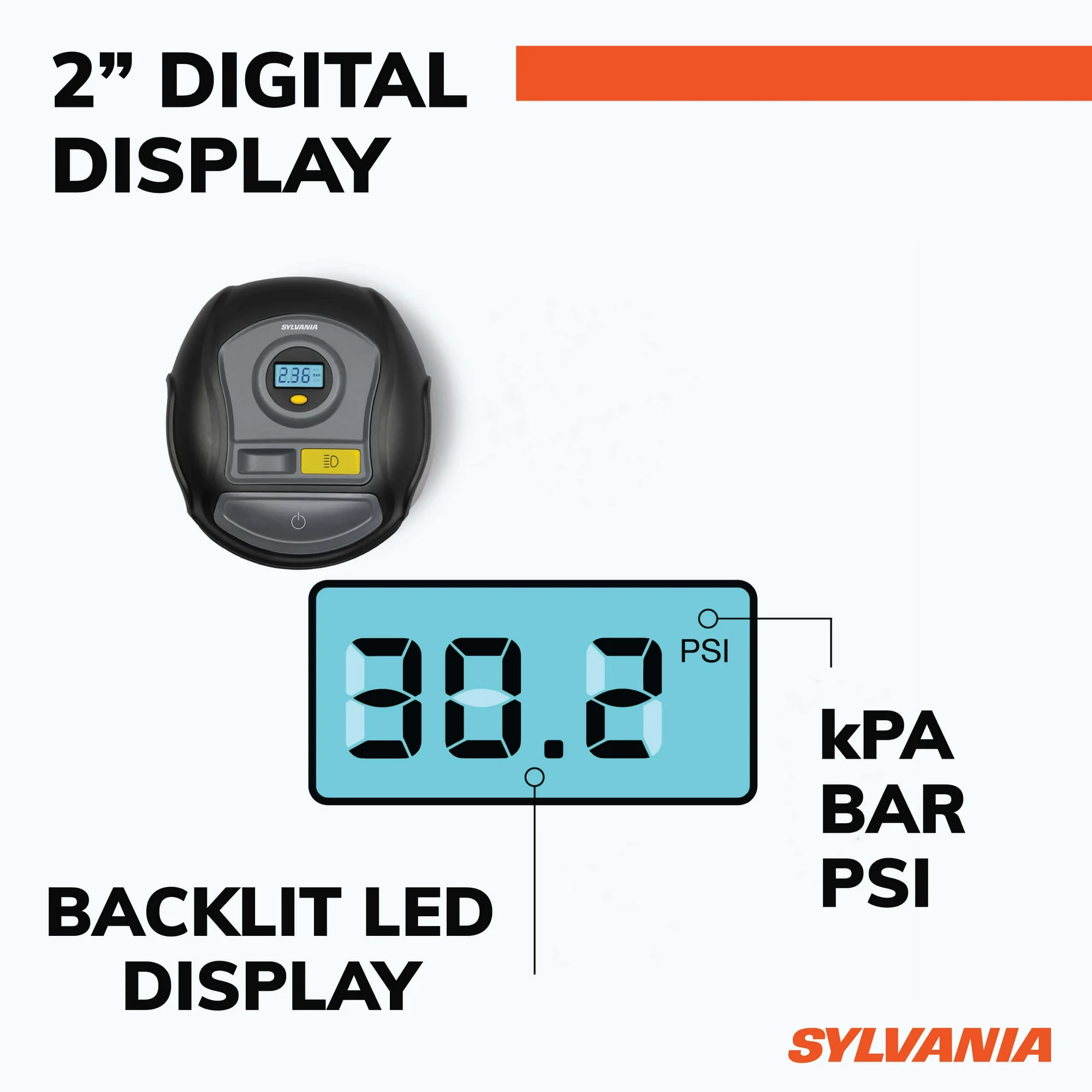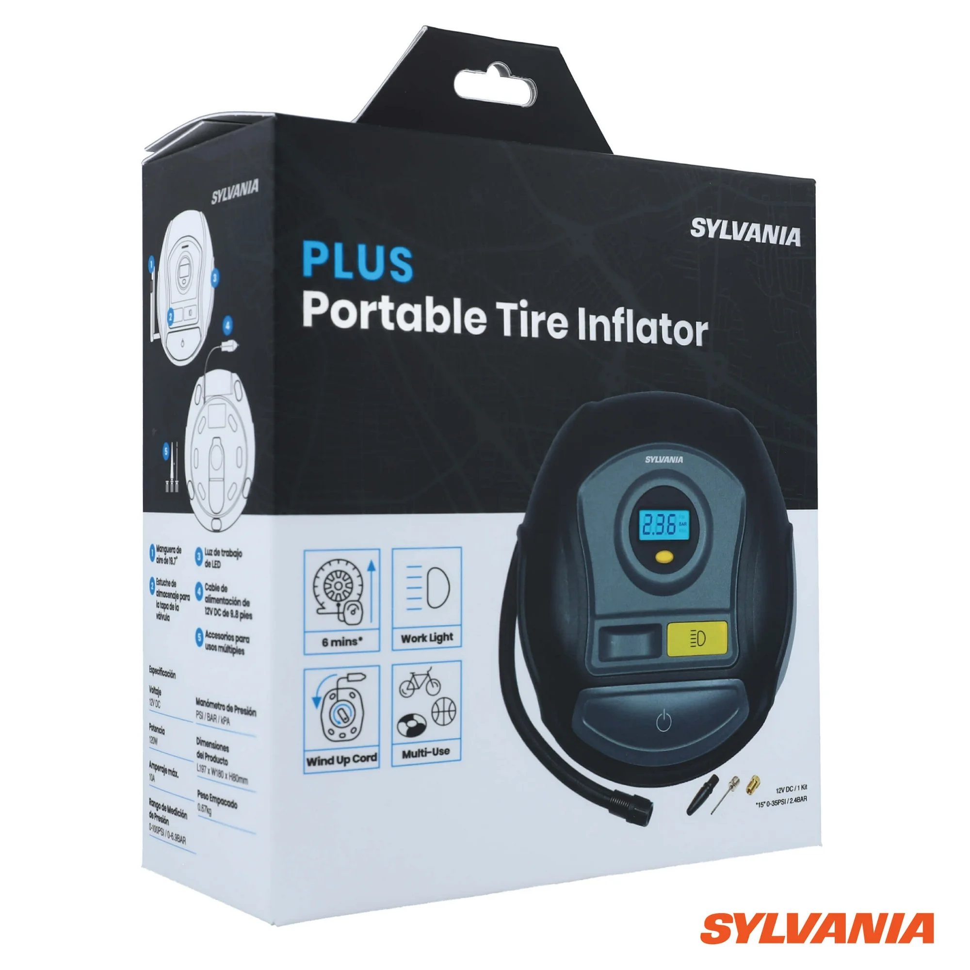 Sylvania Plus Portable Tire Inflator with Digital Display and LED Work Light – Item #8730