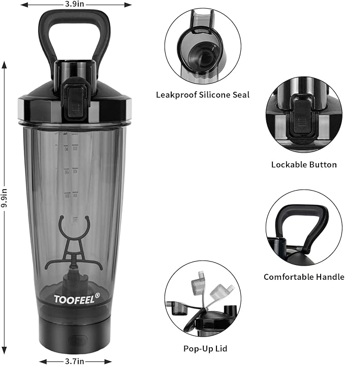 - Perfect Gift for Fitness Enthusiasts: Surprise your friends and loved ones with this perfect gift idea! TOOFEEL protein shaker bottle is the first-choice gift for fitness enthusiasts on birthdays, Christmas, thanksgiving and more. The electric shaker bottle helps him to get work done more easily, faster and comfortable.