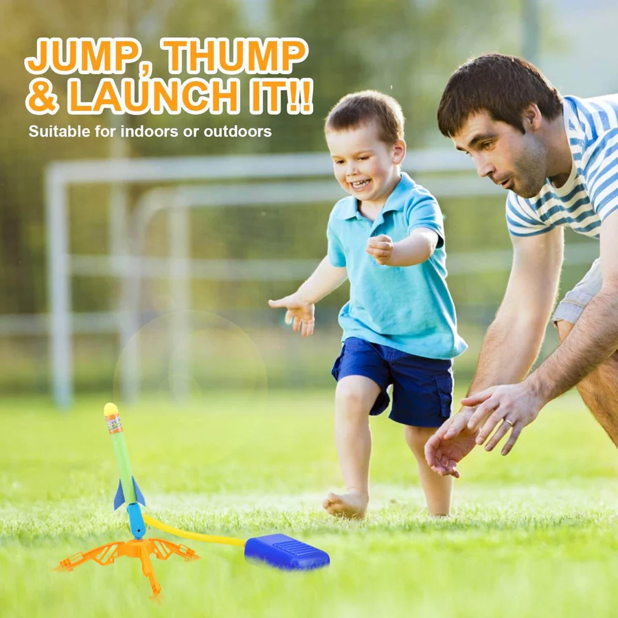 - DURABLE TOY ROCKETS AND LAUNCHER – Our kids rocket launcher toy is durably designed to sustain countless jumps and stomps. But just in case you manage to lose or break one of the rockets, it comes with 6 of them which can crash into things without breaking or damaging what they hit. Safe enough for inside, but they launch far enough for outside!
