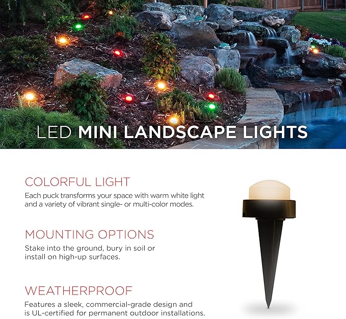 UltraPro Mini LED Landscape Lights – 12 Pucks – 96ft – Weather Resistant – Color Changing – Item #7852 70776