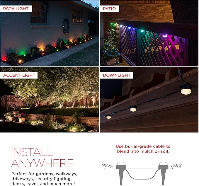 - Colorful Light – Each puck provides your space with your choice of warm white light, and a wide variety of single and multi-color modes – creates incredible year-round accent lighting while seamlessly blending into the environment