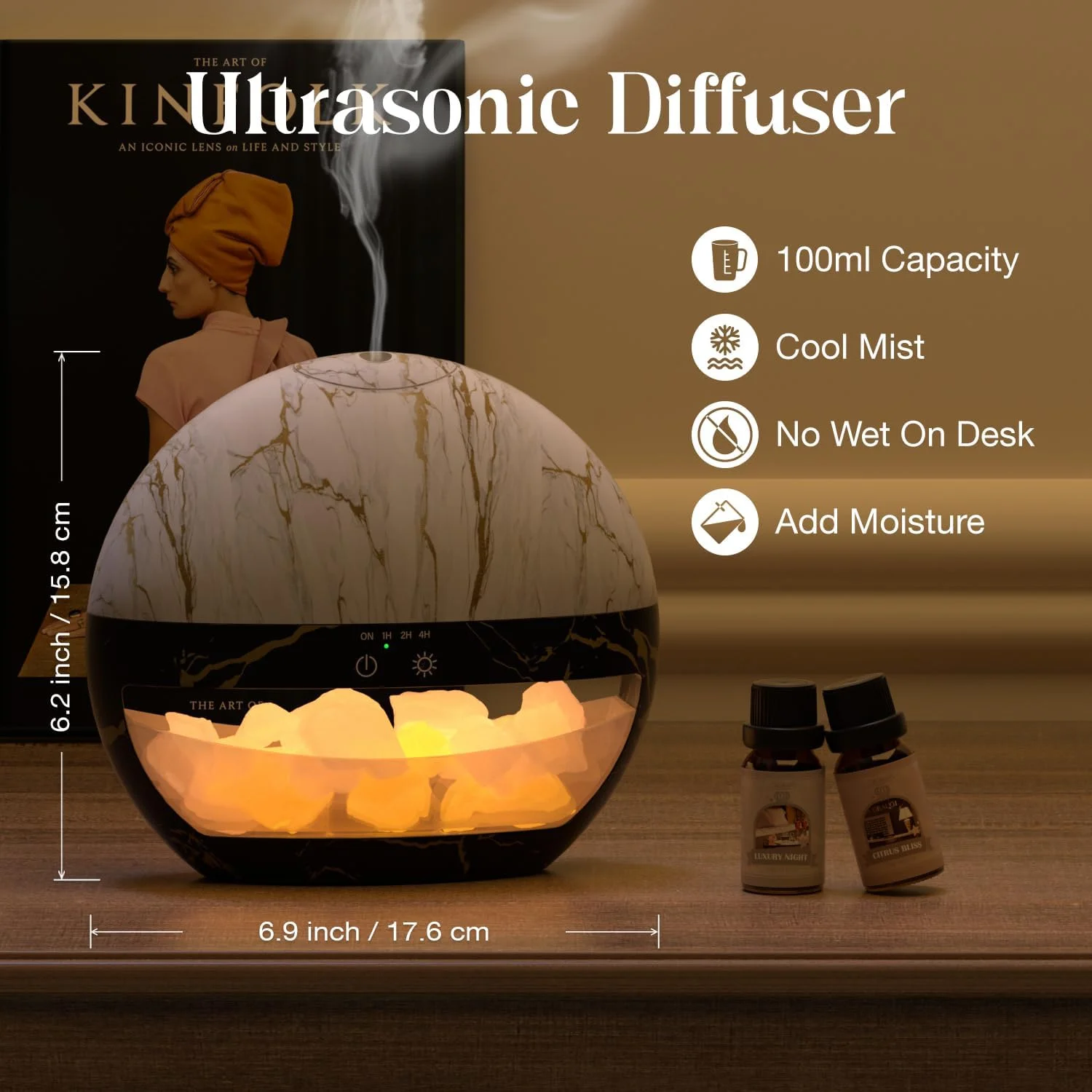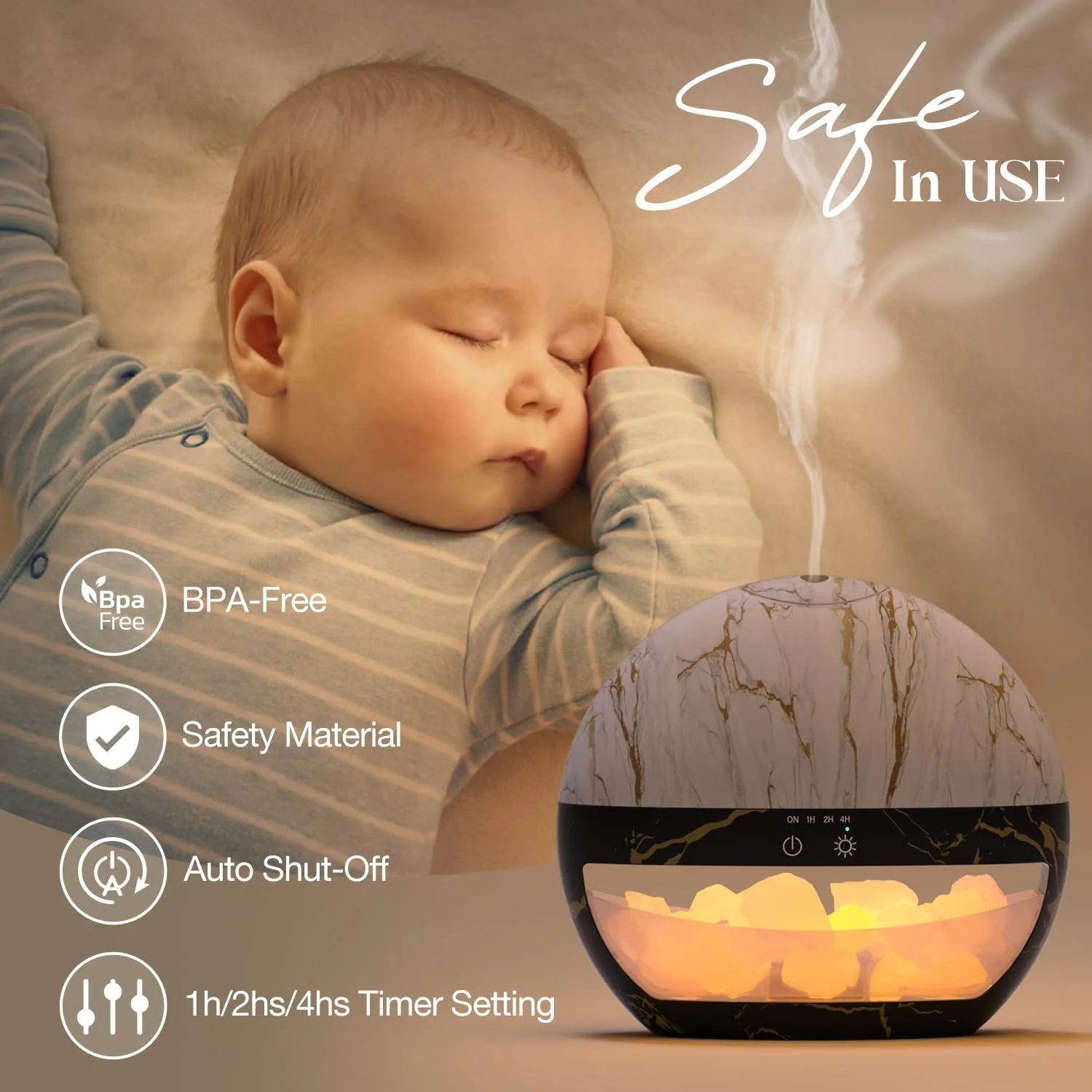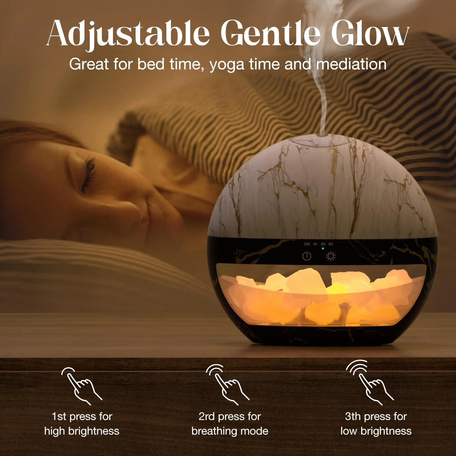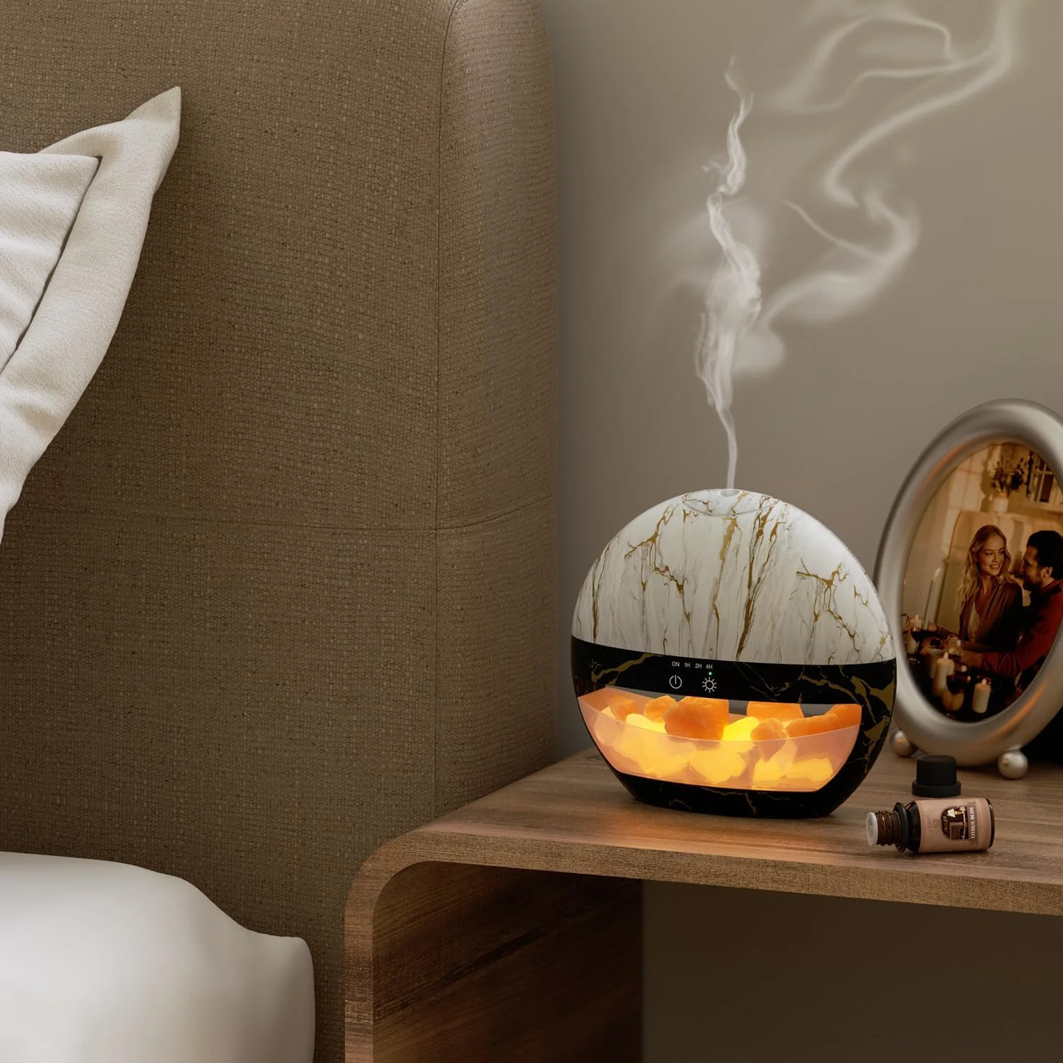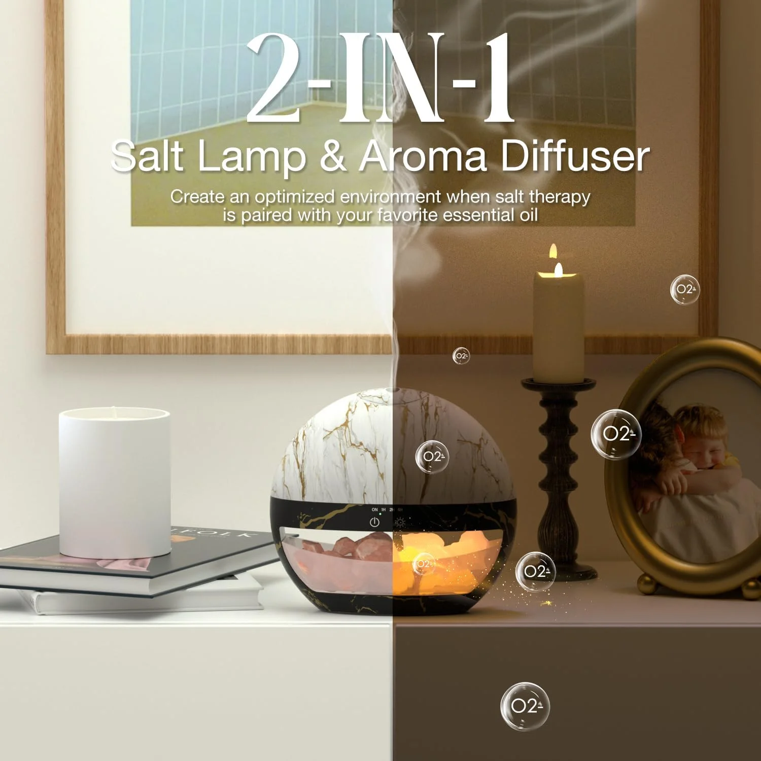 Ultrasonic Essential Oil Diffuser & Himalayan Salt Lamp – 100ml – Cool Mist Humidifier – Timer – Auto Shut-Off – Marble – Item #8507