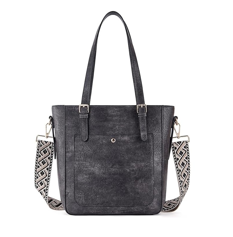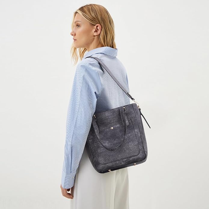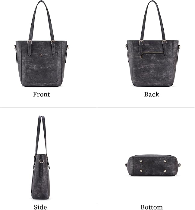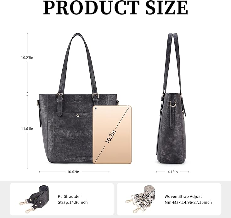 - COME WITH 2 PCS STRAPS: Each shoulder handbag for women is equipped with 2 removable shoulder straps: 1 guitar strap + 1 vegan leather style strap. The adjustable strap has a length of 14.96-27.16 inches. So this bag can be your purse, handbag, laptop tote, crossbody bag, or shoulder bag. Both detachable wide straps are thick and gentle on your shoulder. The leather purse and handbag fit your outfits for all occasions: daily life, work, business, dating, travel, etc