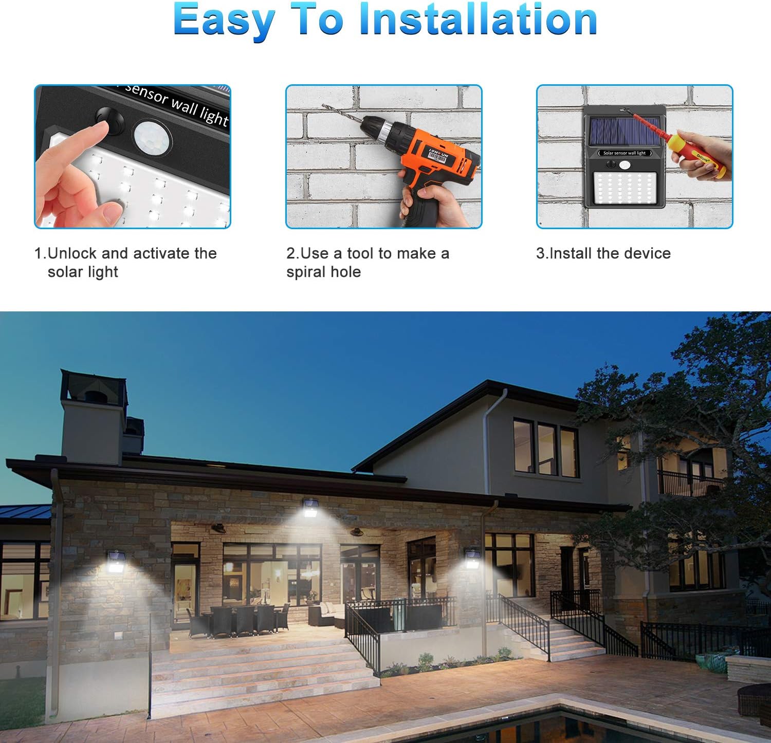 - 【Solar Security Lights eco-friendly】: The Solar lights with rechargeable battery allows the solar lights to be continuously illuminated for longer periods of time to meet every day lighting needs. The solar panels work during the day to store electricity and light up the outdoors for you at night.