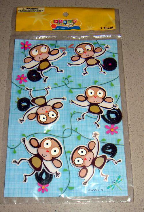 These Party Like Crazy stickers are fun and can be used for craft or scrapbooking purposes. Features 6 Monkey 3-D stickers with Fuzzy Tails. Each sheet comes retail packaged and UPC coded.