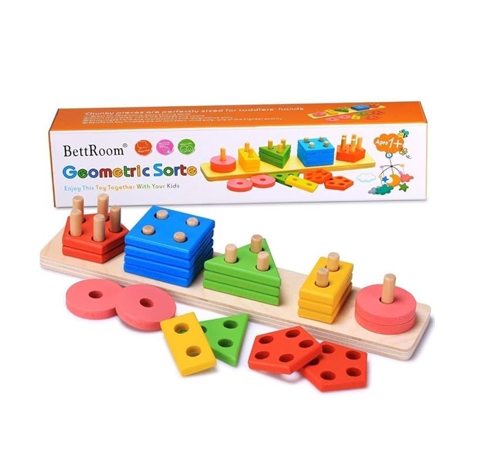 Wooden Blocks Educational Stacking Learning Montessori Toys for Kids – Puzzle Geometric Sorter Toy – Item #8460