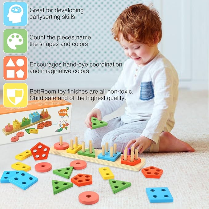 - Encourages hand-eye coordination and imaginative play: This is a wonderful Educational shape toy for toddlers, help kids learn shapes, colors, counting and hand-eye coordination.Great toddler toys for 3 4-5 6 year old boys girls