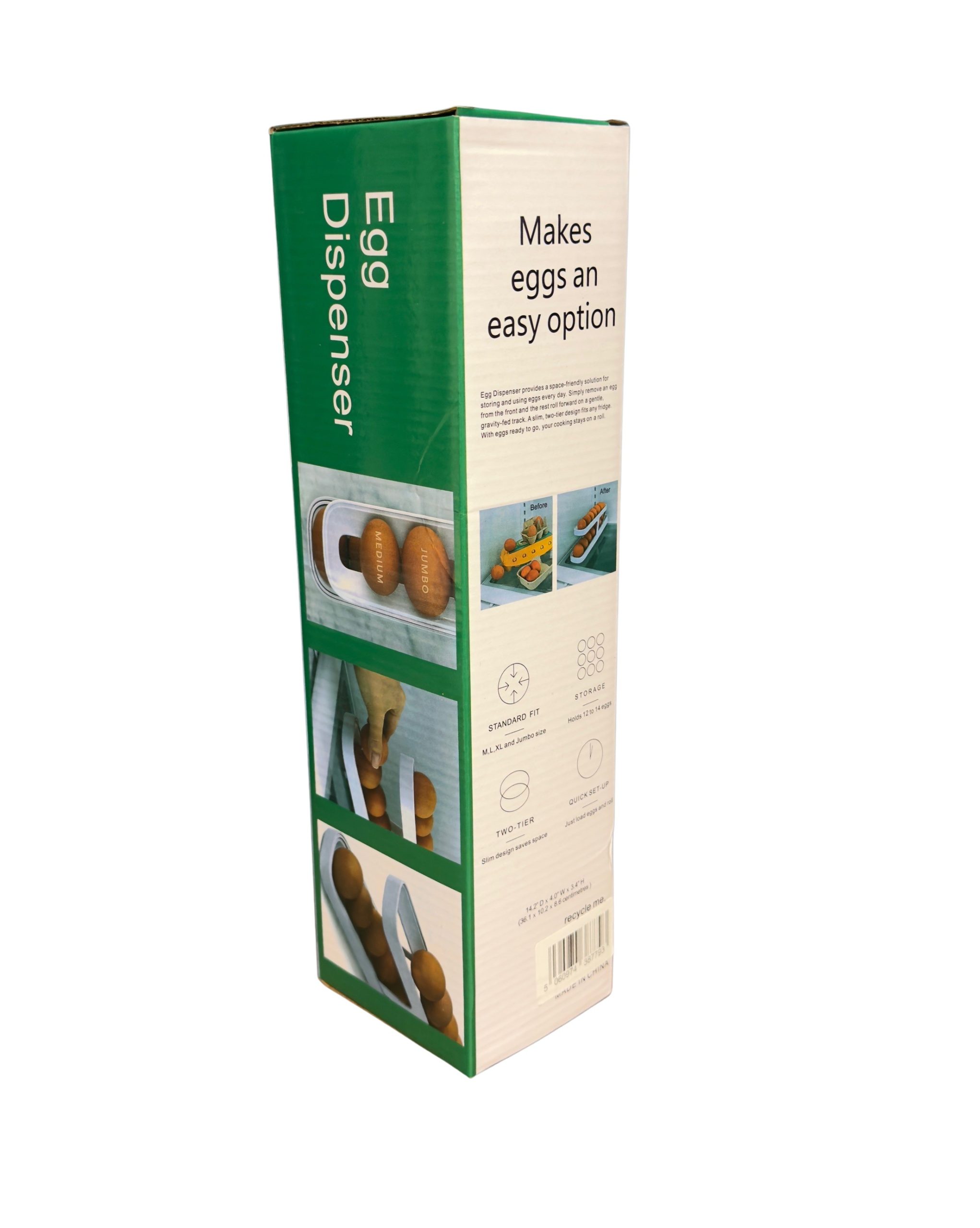 - DISPENSER: Gravity-fed design dispenses eggs one at a time with gentle rolling motion